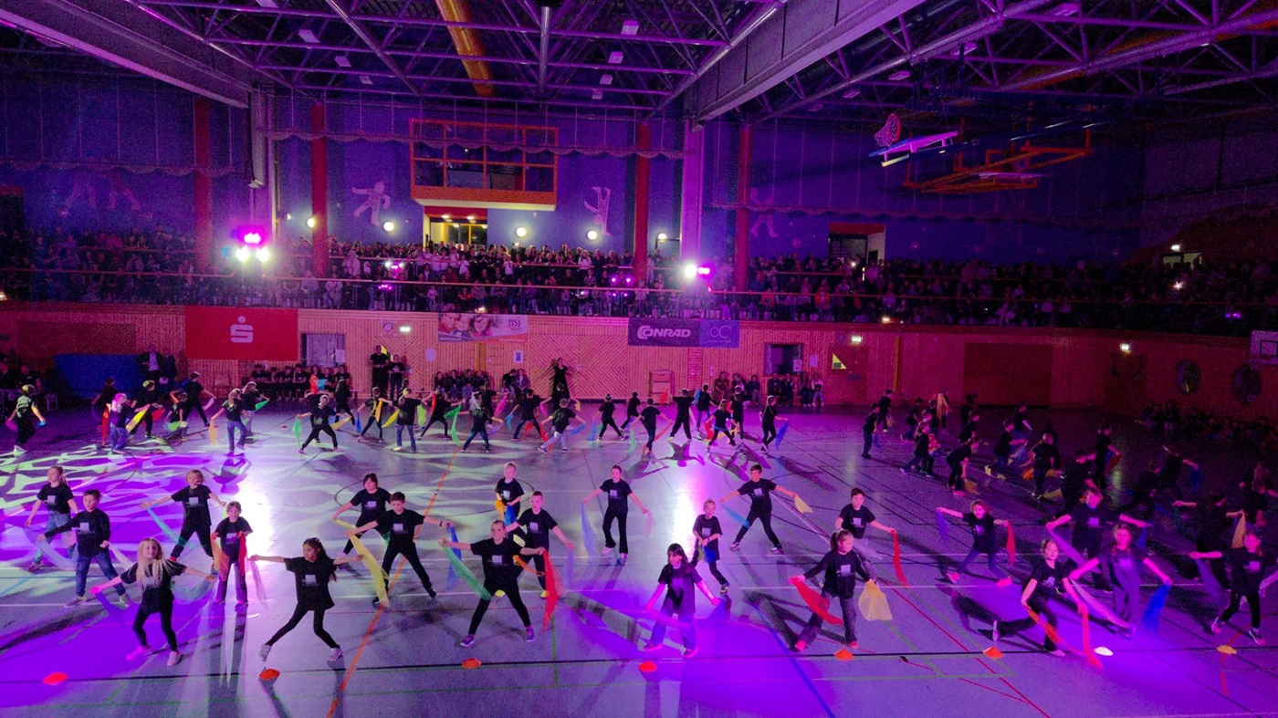 Am 18. November 2025 fand in der TRIMAX-Halle wieder der Abend des Amberger Schulsports statt. Wir freuen uns immer sehr, dass wir dafür Gastgeber sein dürfen. Dieses Mal haben die vier dritten Klassen einen Tüchertanz zu Weeknds „Blinding Lights“ aufgeführt. Traditionell dürfen wir den Abend eröffnen. Die mitreißende Aufführung stimmte die Zuschauer gleich auf die vielen weiteren Höhepunkte der anderen beteiligten Schulen ein. Voller Stolz verließen die Kinder unter Applaus anschließend die Halle. Die intensiven Übungen der letzten Wochen hatten sich gelohnt.